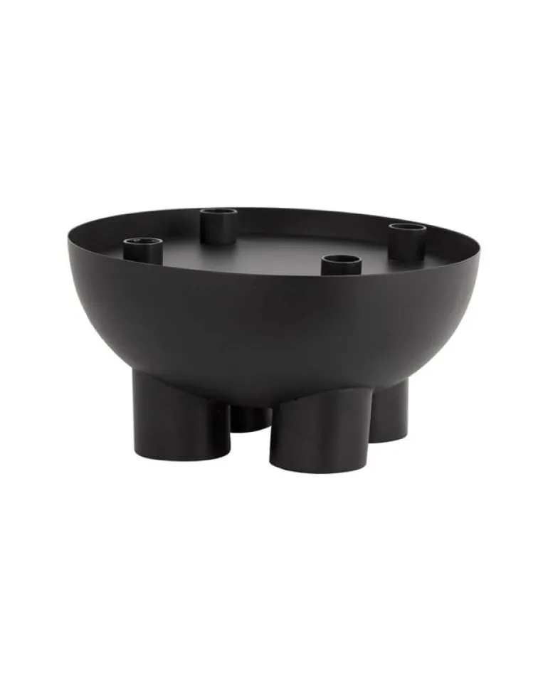 Mooie kandelaar van het Deense interieurmerk Nordal. De Nordal Pico kandelaar zwart is gemaakt van ijzer met een zwarte coating. Er kunnen vier kaarsen in geplaatst worden. Afmeting ø27x13cm