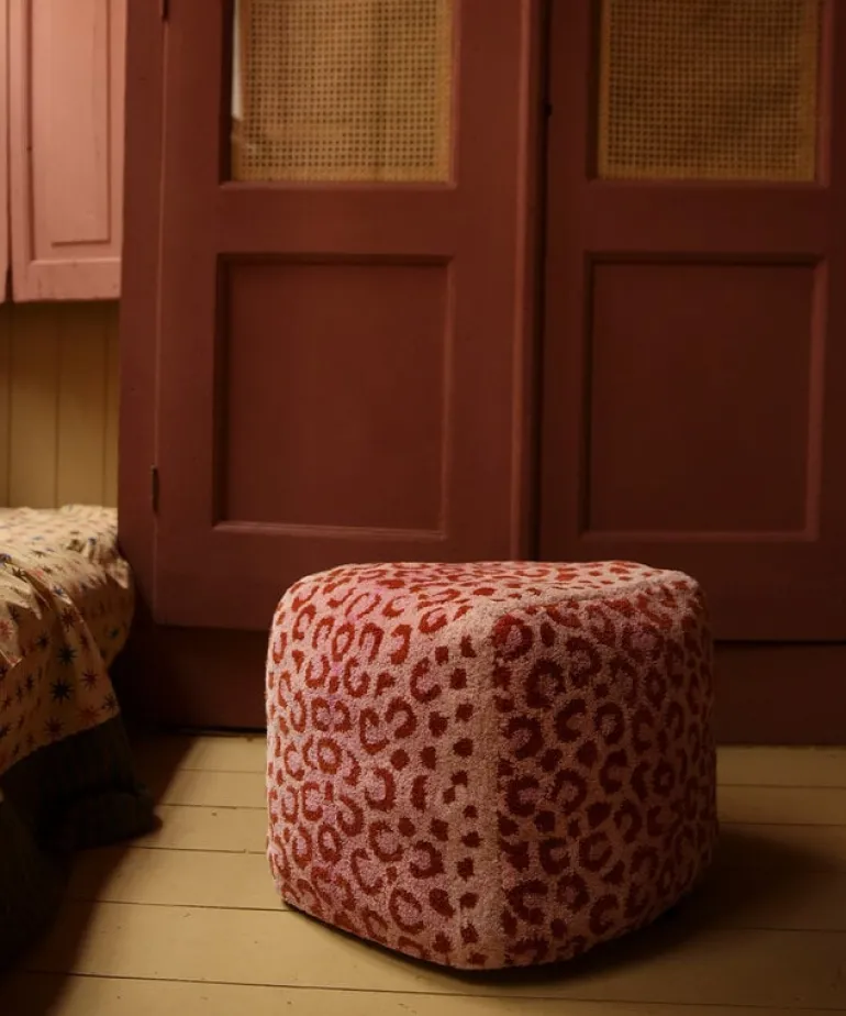 WAUW!! Wat een plaatje is deze poef van Doing Goods. De Doing Goods Pink leopard poef small is een echte eyecatcher en wordt met veel liefde handgemaakt in India. Afmeting 50x50x50cm. Elke poef is uniek doordat de items handgemaakt worden.