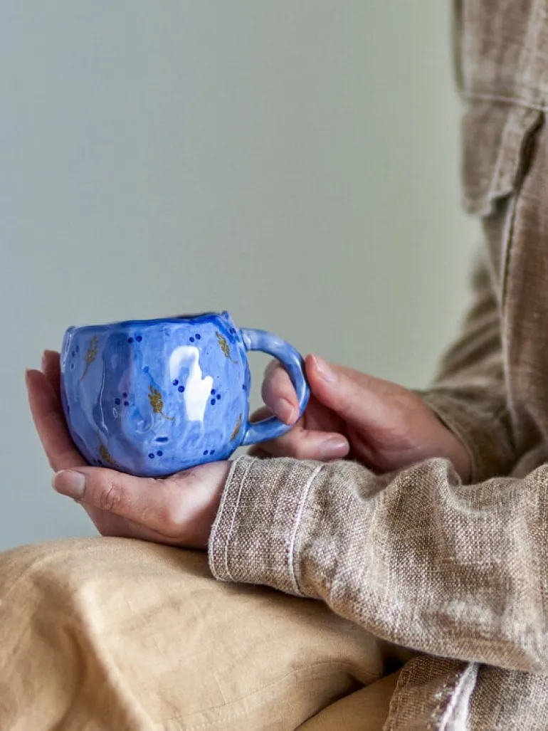 De Bloomingville Pippine mokken worden geleverd in een set van 6 stuks. Het diepblauwe glazuur van de mok benadrukt de kenmerkende textuur en glanzende afwerking. Afmeting Ø9x7cm