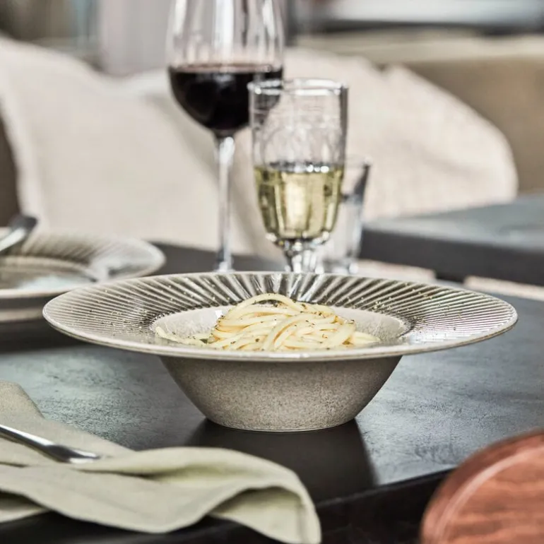 Met de House Doctor Pleat pastaborden presenteert je pasta op de juiste manier. Deels functioneel, deels stijlvol, de brede rand accentueert het gerecht en contrasteert met de diepte van het bord. Wordt geleverd in een set van 6 stuks. Afmeting Ø28x6cm
