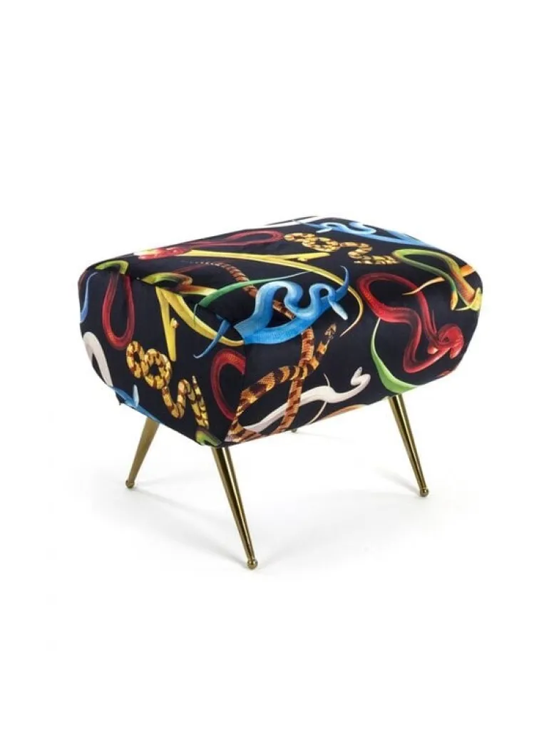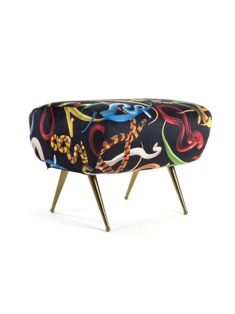 Leuke poef met metalen poten en een verrassende print van Seletti. In meerdere prints en kleuren beschikbaar. De Seletti poef snakes is een echte EYECATCHER! Afmeting 51×46 h. 42cm