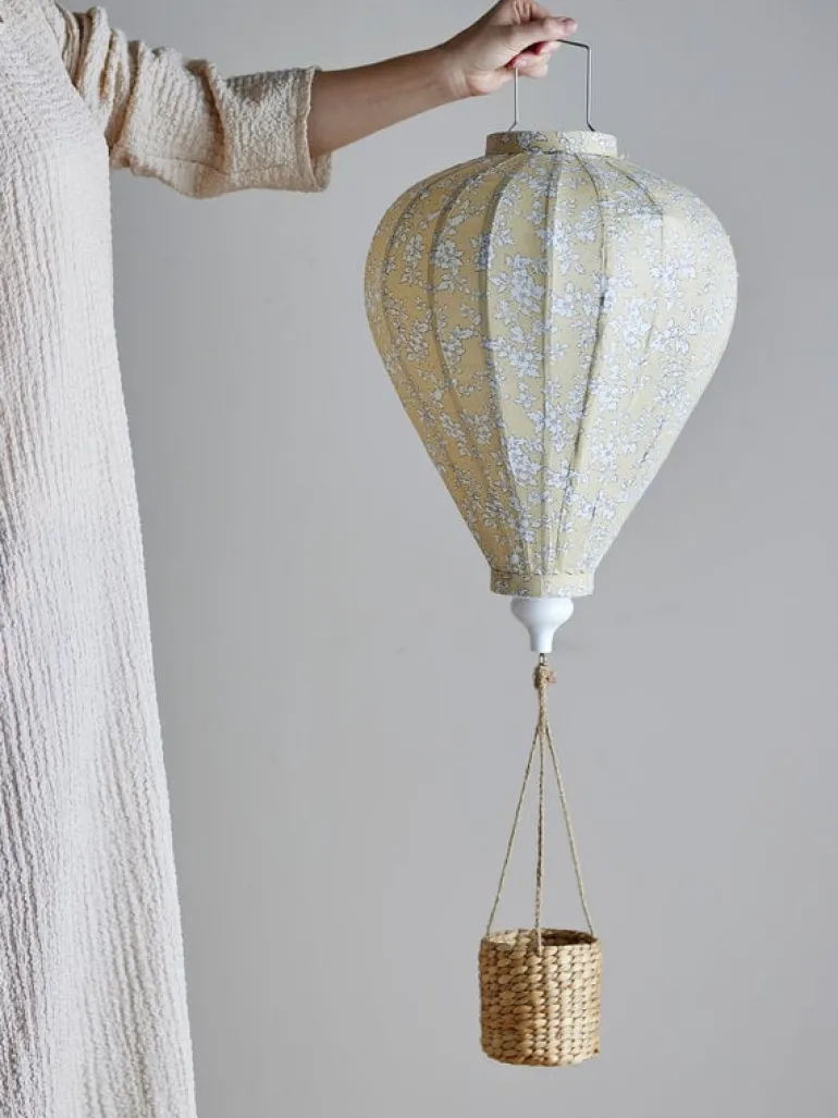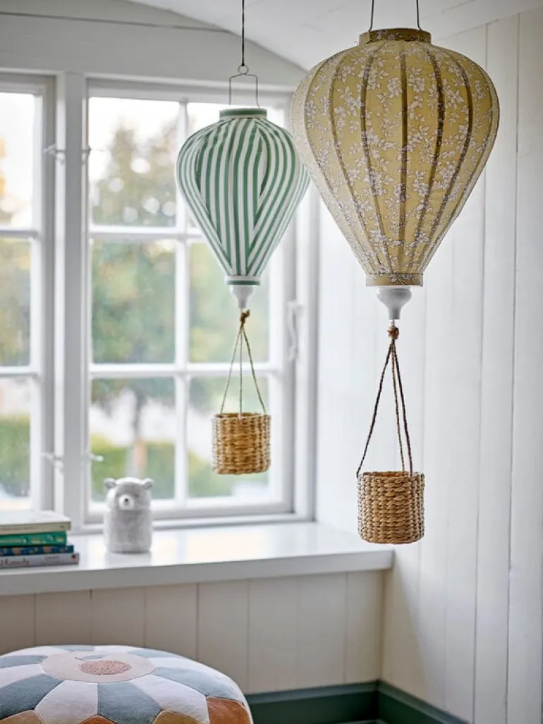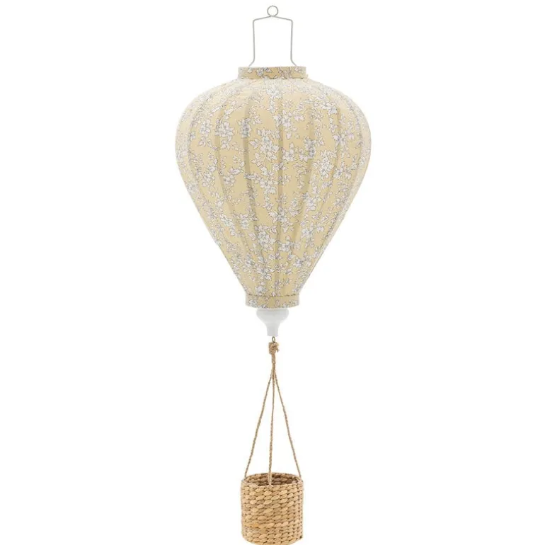 De Bloomingville Mini Pomp mobiel is een decoratieve luchtballon. De ballon zelf is gemaakt van polyester met een delicaat bloemmotief in zachte gele tinten. De mand is gemaakt van riet en geeft warmte aan de kinderkamer. Afmeting Ø35x85cm
