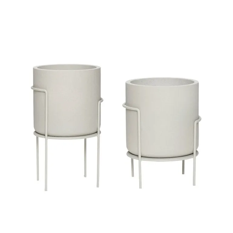 Moderne Hübsch potten uit de nieuwe Hübsch collectie. De gipsen potent worden geleverd inclusief metalen standaard. Leuk te combineren met andere items uit de nieuwe Hubsch collectie. Afmeting ø40xh45cm, set van 2 stuks