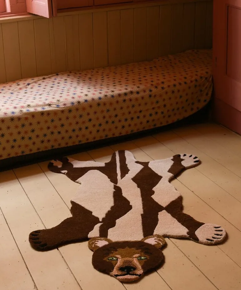 De Tapis Amis vloerkleden van Doing Goods zijn razend populair en wij begrijpen waarom! Het Doing Goods Quin bear vloerkleed L is prachtig en wordt met veel liefde handgemaakt in India van wol. Afmeting 145x97x2cm