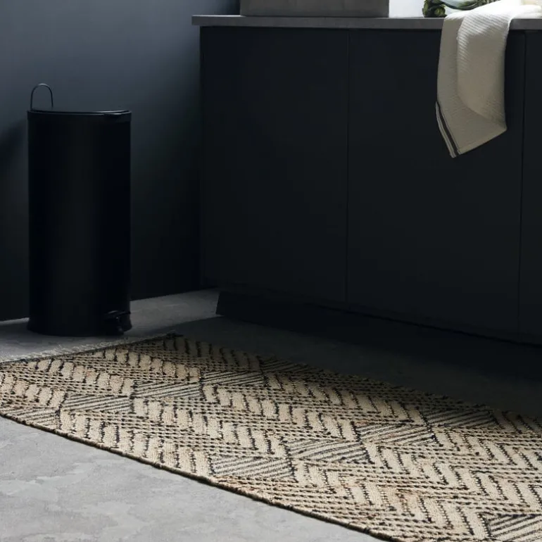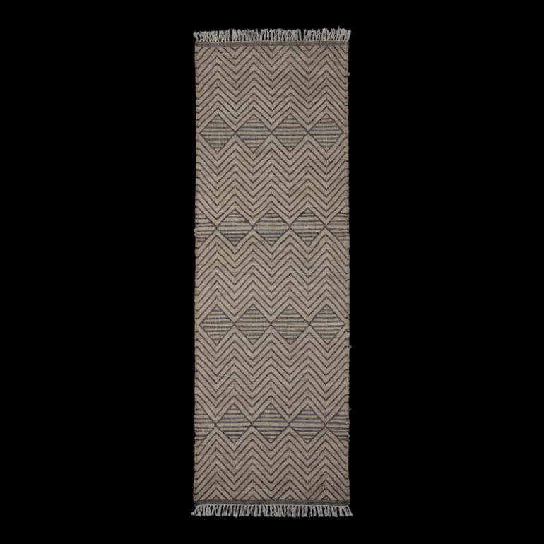 Prachtig House Doctor Ranjar vloerkleed. Dit naturel kleurige vloerkleed is gemaakt van jute, wol en katoen en heeft een afmeting van 300x90cm. Voorzien van een mooi patroon en aan beide zijden franjes.