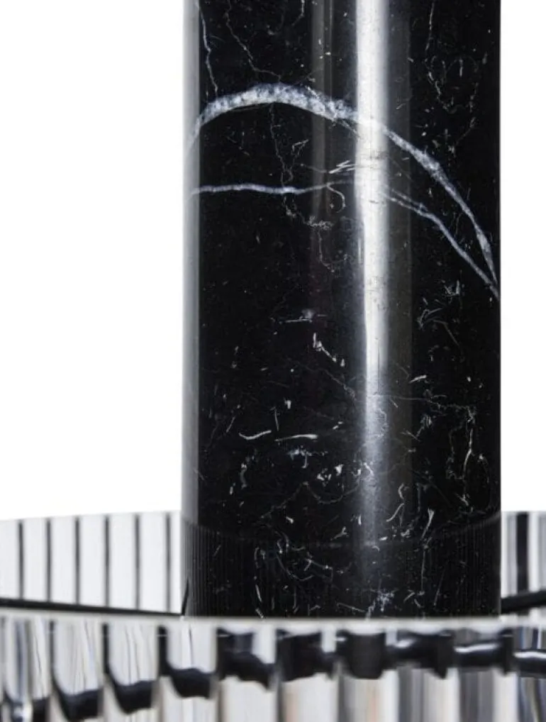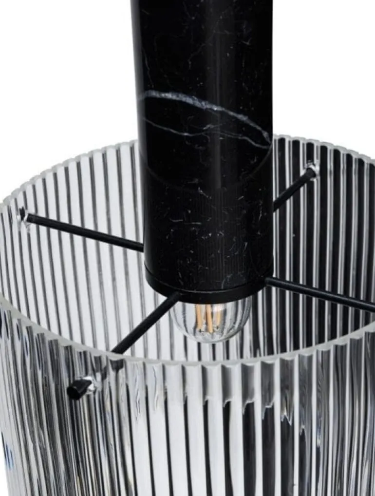 Mooie hanglamp van het Deense interieurmerk Hubsch. De Hubsch Revolve hanglamp heeft een diameter van 25cm en een hoogte van 30cm. Gemaakt van glas en marmer in de kleur zwart.