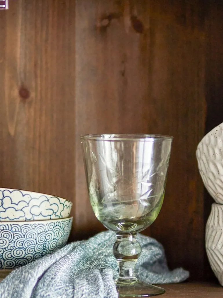 De Bloomingville Rhina wijnglazen zijn gemaakt van gerecycled glas. Het heeft een prachtig ontwerp met handgesneden details. Wordt geleverd in een set van 4 stuks. Afmeting 8,5x14cm
