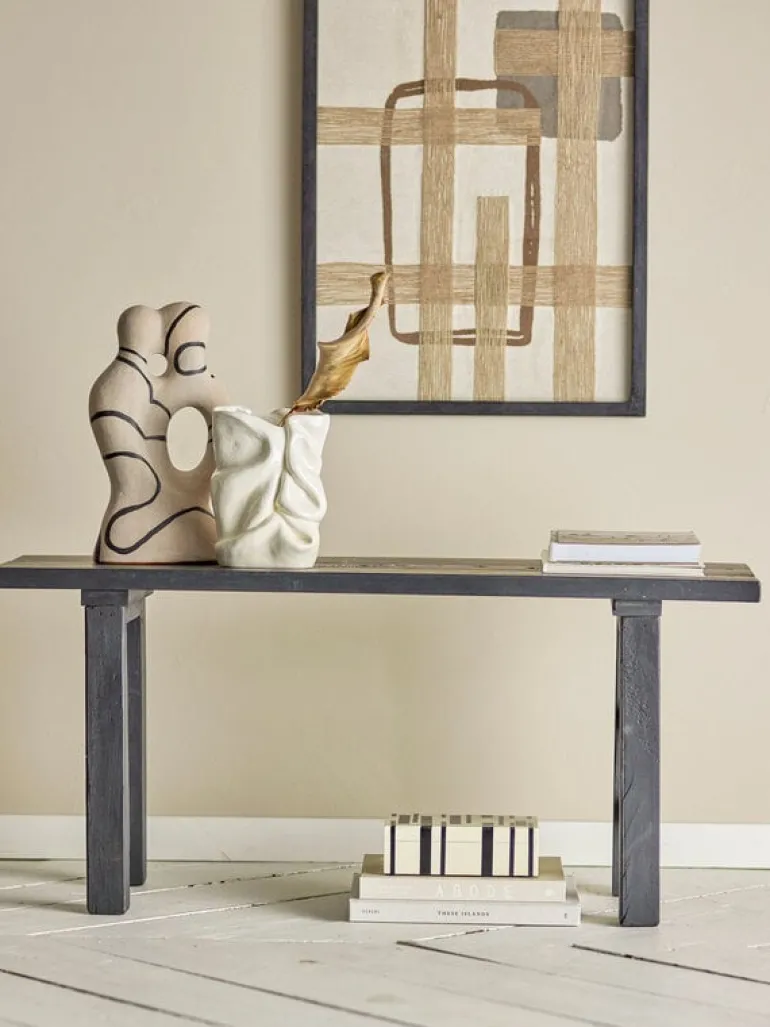 De Bloomingville Riber bank is gemaakt van gerecycled hout, waardoor elke bank uniek is en een authentieke uitstraling heeft. Creëer een visueel middelpunt door de bank te gebruiken voor je favoriete planten en decoratieve objecten. Afmeting 102x45x32cm