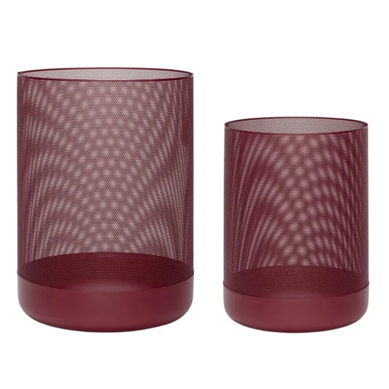 Mooie metalen ronde manden van het interieurmerk Hubsch. De bordeaux rode manden worden geleverd in een set van 2 stuks. Afmeting ø28xh36, ø34xh44cm