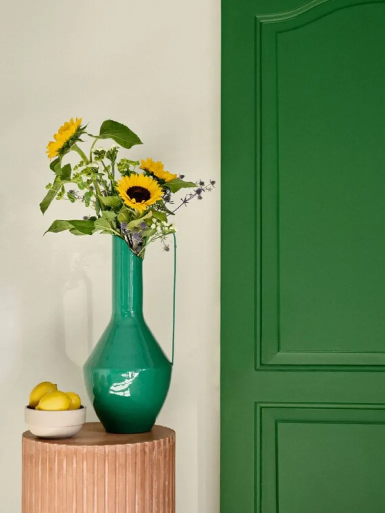 Hou jij van statement items in jouw interieur? Dan is de Broste Copenhagen Rosario vaas perfect! De grotere ijzeren vaas in de kleur groen trekt veel aandacht. Afmeting Ø23x55cm
