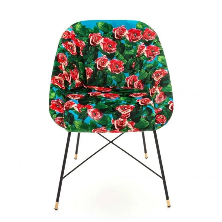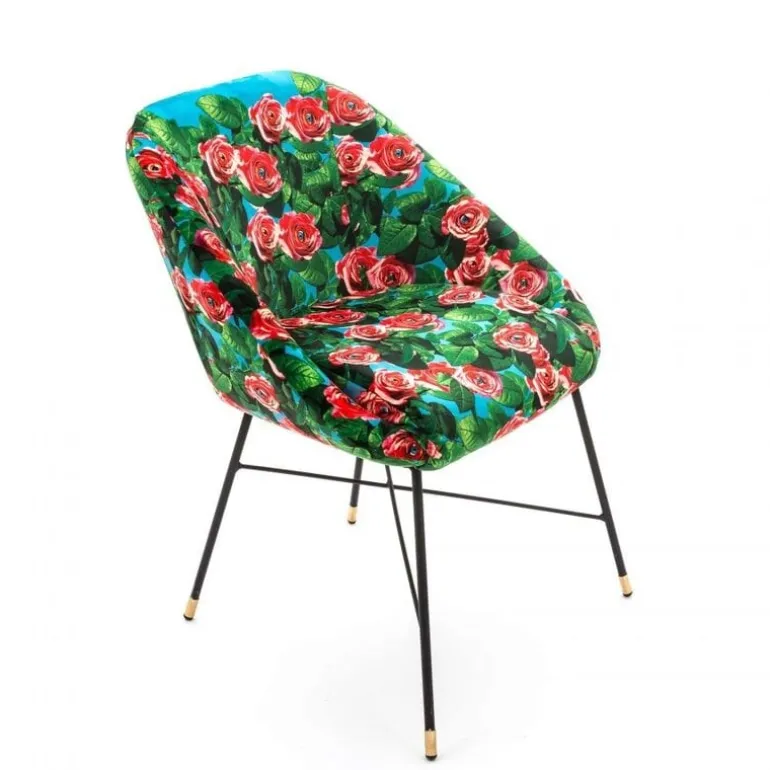 De Seletti Roses padded stoel is een comfortabele stoel. De padded stoelen zijn beschikbaar in verschillende prints, wat heel leuk is om te mixen en matchen. Afmeting 60x50cm, hoogte 72cm.