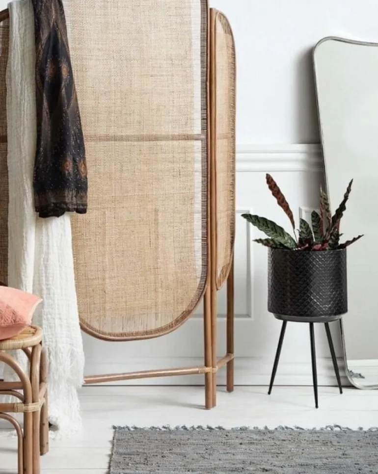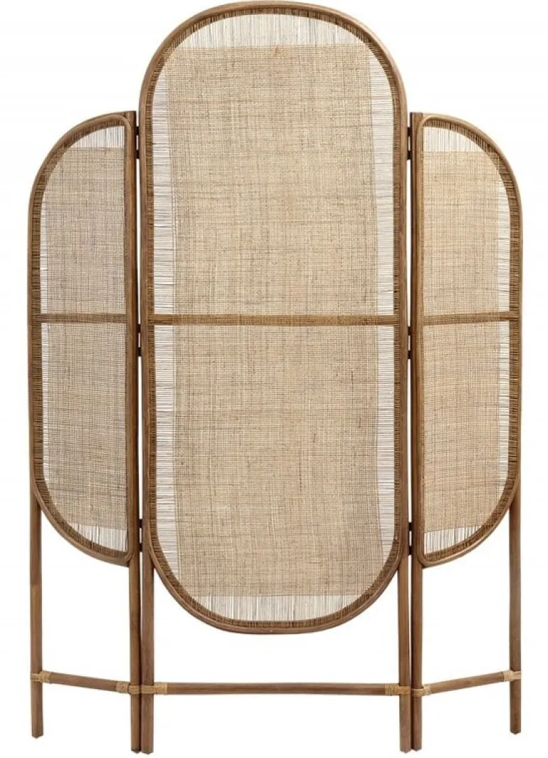 Mooi kamerscherm van het prachtige interieurmerk Nordal. Dit Nordal kamerscherm is gemaakt van naturel rotan met webbing. Het scherm is 130 cm lang, 3 cm dik en 180 cm hoog.