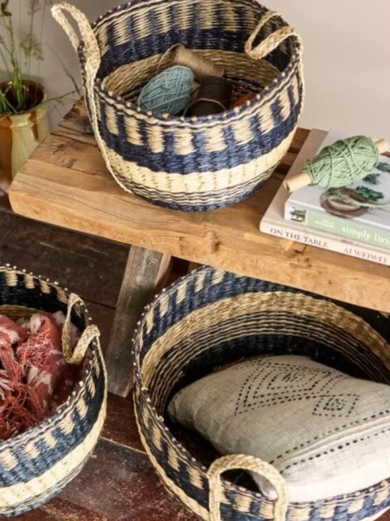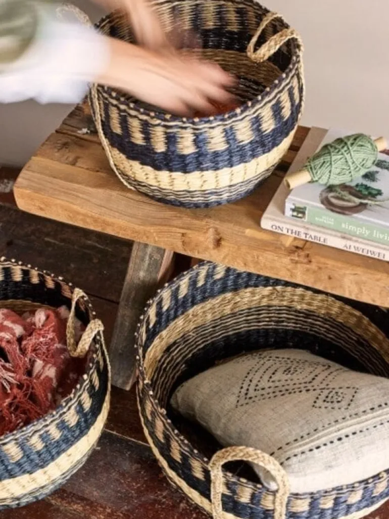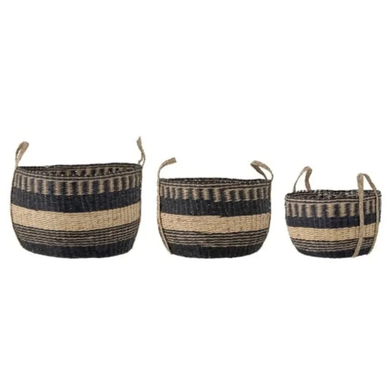 Set van 3 manden met verschillende afmetingen. De Bloomingville Sania manden zijn gemaakt van zeegras. Afmeting Ø30x21cm, Ø38x25cm en Ø45x29cm