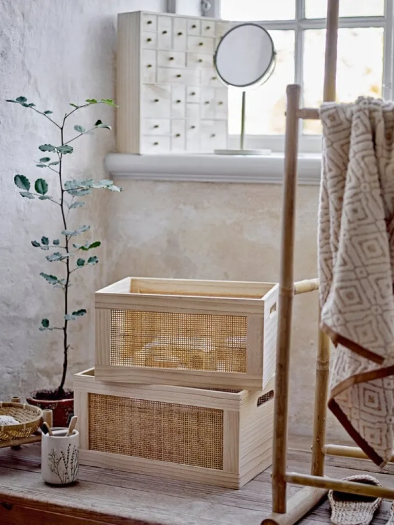 Het Bloomingville Saye handdoekenrek is gemaakt van bamboe, waardoor het een lichte en natuurlijke uitstraling heeft. De twee stangen op verschillende hoogtes bieden ruimte voor de handdoeken van het hele gezin in de badkamer. Afmeting 70x105x30cm
