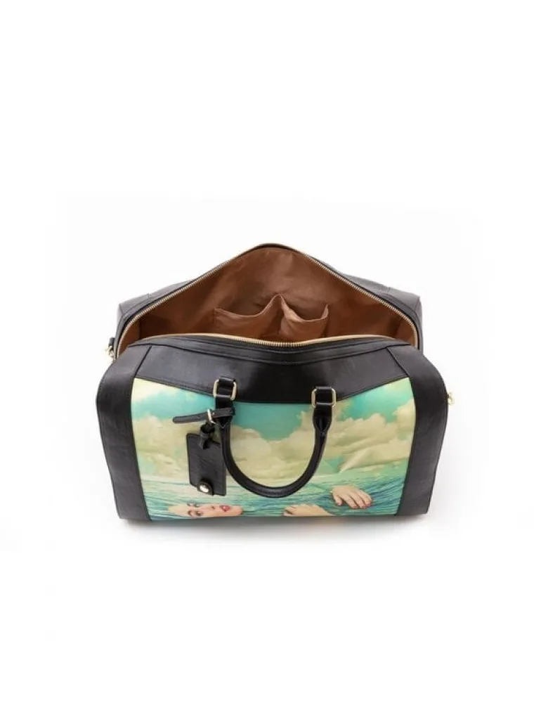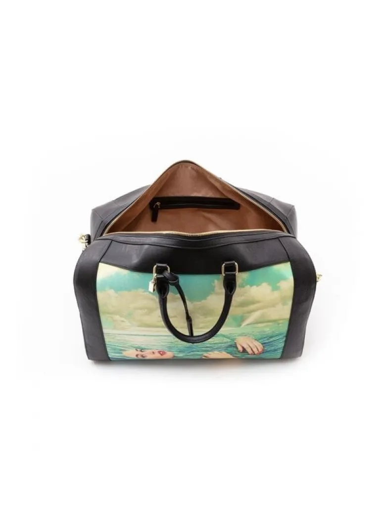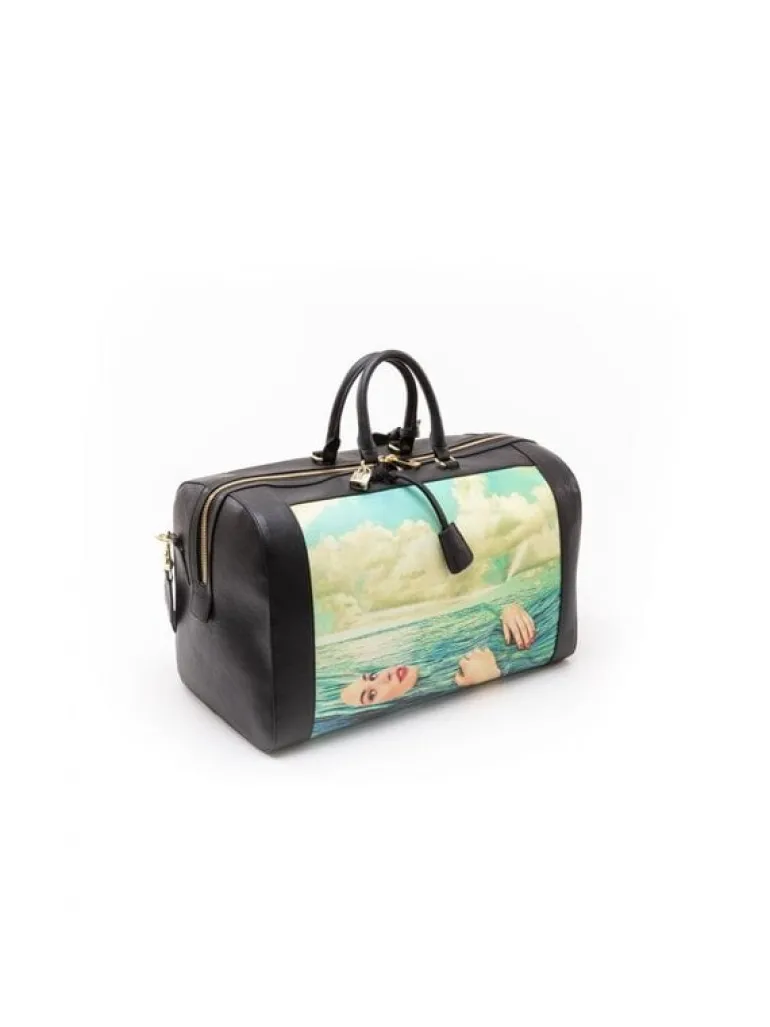 Leuke tas van het Italiaanse interieurmerk Seletti. De Seletti Seagirl reistas is gemaakt van pvc en polyester. Beschikbaar met verschillende prints. Afmeting 47×27,5cm, hoogte 46,5cm.