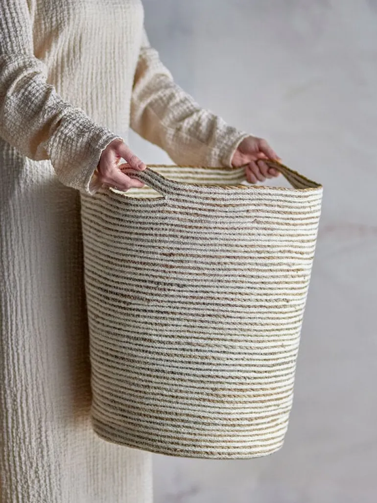 De Bloomingville Selena mand is gemaakt van natuurlijke jute en heeft een eenvoudig, gestreept ontwerp. De fijne, horizontale strepen in neutrale tinten geven de mand een tijdloze en veelzijdige uitstraling. Afmeting 40x49x40cm