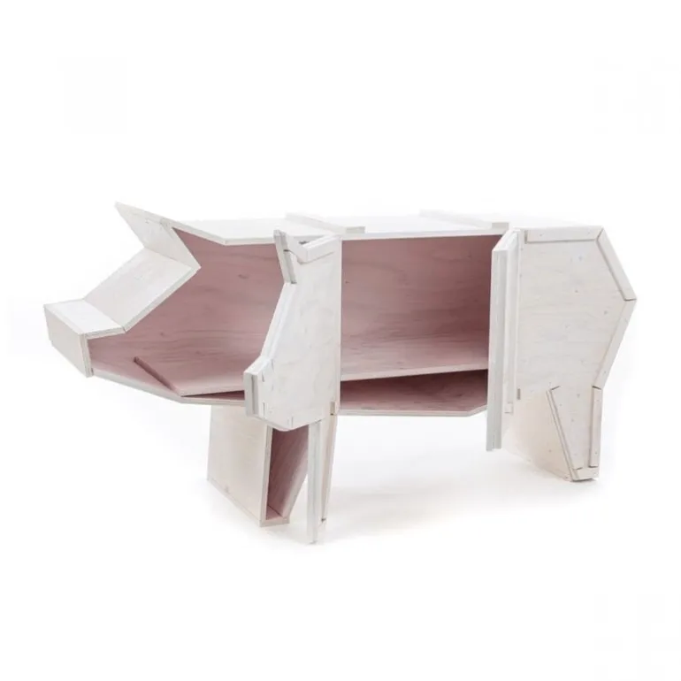Houten kast van het interieurmerk Seletti in de vorm van een varken. De Seletti Sendig pig kast heeft een afmeting van 150x44cm en een hoogte van 76cm. De kast is in verschillende uitvoeringen beschikbaar.