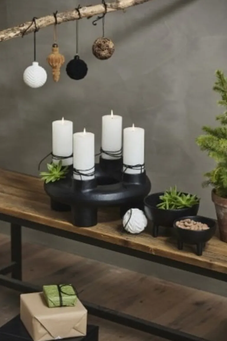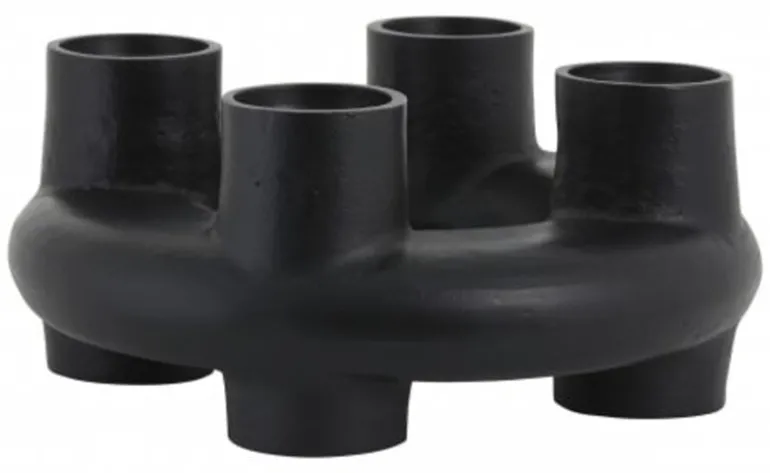 Mooie kandelaar van het Deense interieurmerk Nordal. De Nordal Senja kandelaar is gemaakt van ialuminium. Er kunnen vier kaarsen met een diameter van 70mm in geplaatst worden. Diameter 37cm en hoogte 17cm.