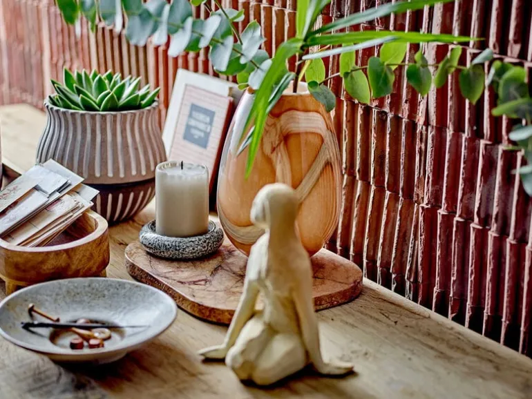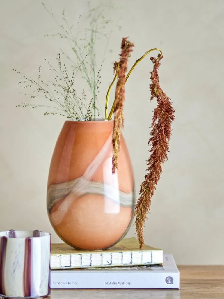 De Bloomingville Shawl vaas is een mondgeblazen glazen vaas in warme tinten. Omdat de vaas mondgeblazen is, is elke vaas uniek met kleine variaties in vorm, patroon en kleur. Afmeting 16,5x23cm