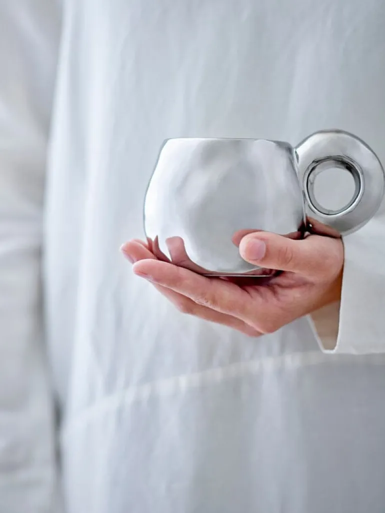 De Bloomingville Shine mokken worden geleverd in een set van 6 stuks. De chromen afwerking maken de mokken uniek. Afmeting Ø10x8cm