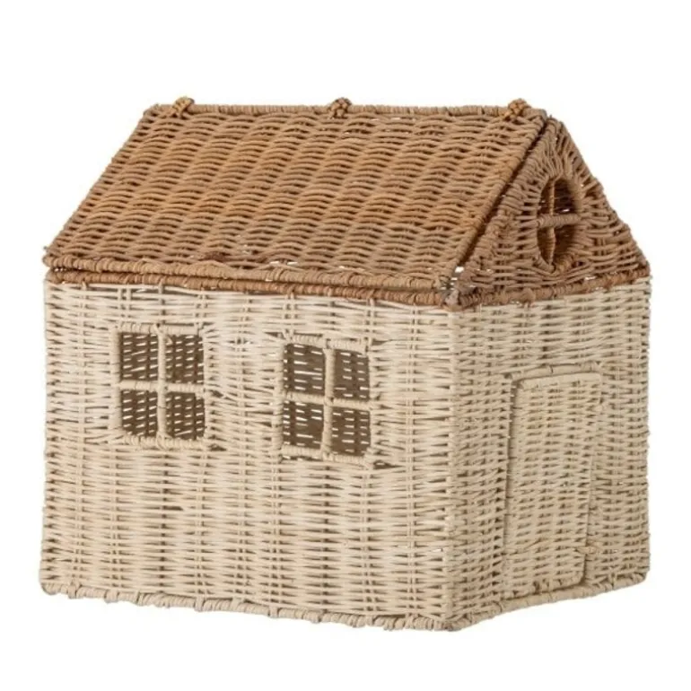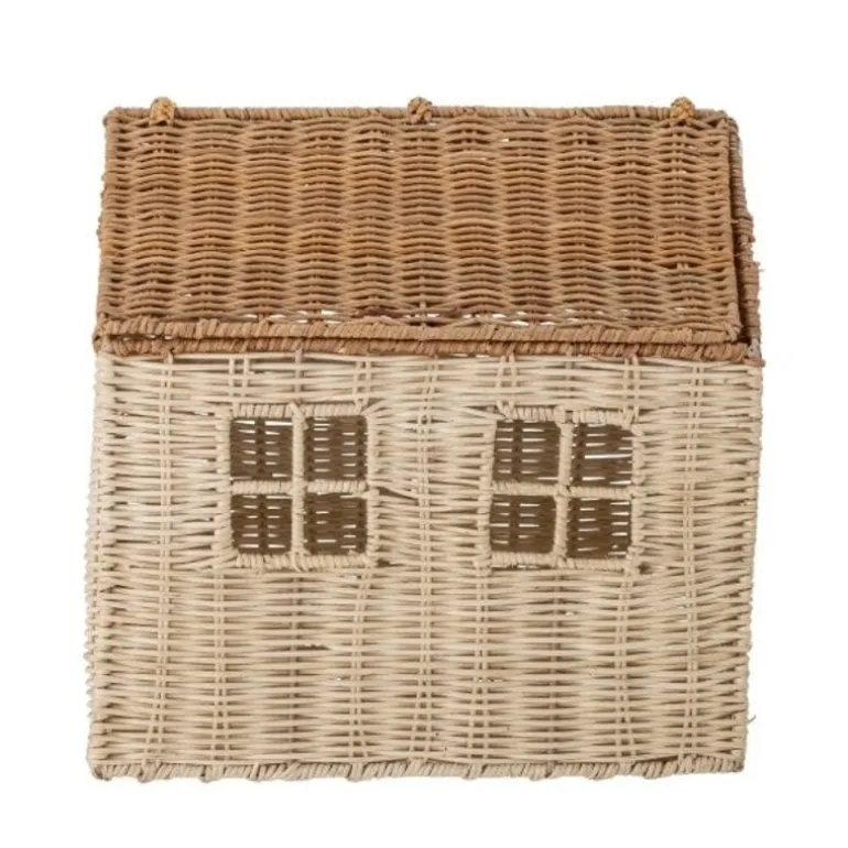 Multifunctioneel item uit de nieuwe AW22 collectie van Bloomingville Mini. De Bloomingville Mini Sigga poppenhuis/opbergmand kan gebruikt worden om spullen op te bergen of als poppenhuis. De bovenzijde van de mand is een deksel. Afmeting 30x25x30cm