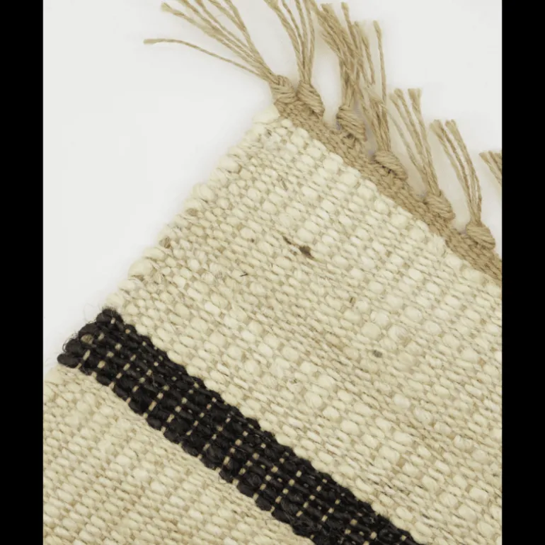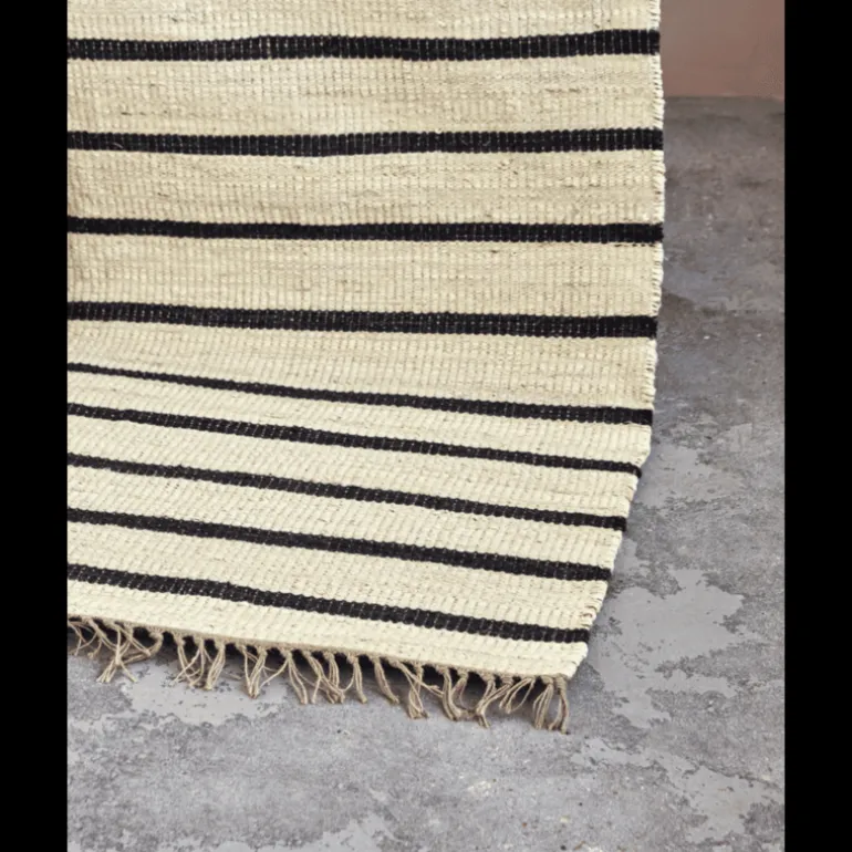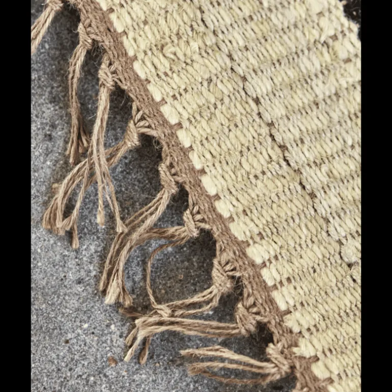 Breng een vleugje natuurlijke elegantie in je interieur met het handgemaakte House Doctor Sima vloerkleed. De natuurlijke kleur van het kleed wordt prachtig aangevuld met zwarte strepen, wat een eenvoudig en grafisch patroon creëert. Afmeting 180x180cm