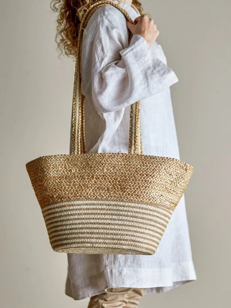 De Bloomingville Simona tas is gemaakt van jute. Met twee lange hengsels is de tas gemakkelijk over de schouder te dragen, waardoor de tas ideaal is voor winkeluitjes, strandbezoeken of dagelijkse boodschappen. Afmeting 42x28x25cm