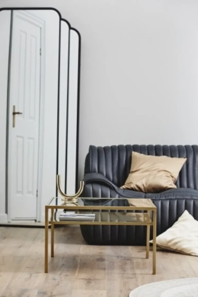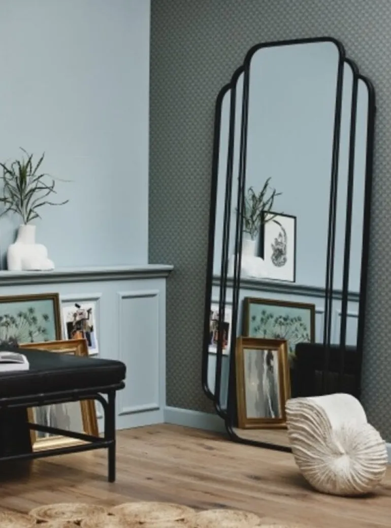 Mooie en grote wandspiegel van het Deense interieurmerk Nordal. De Nordal Skylark spiegel heeft een ijzeren omlijsting met zwarte poedercoating. 200cm hoog, 100cm breed en 2cm diep. Een echte EYECATCHER!