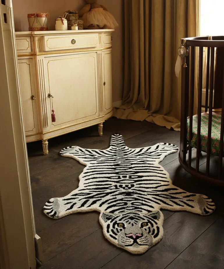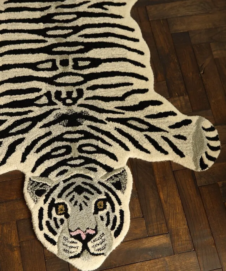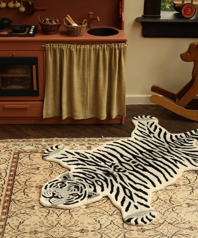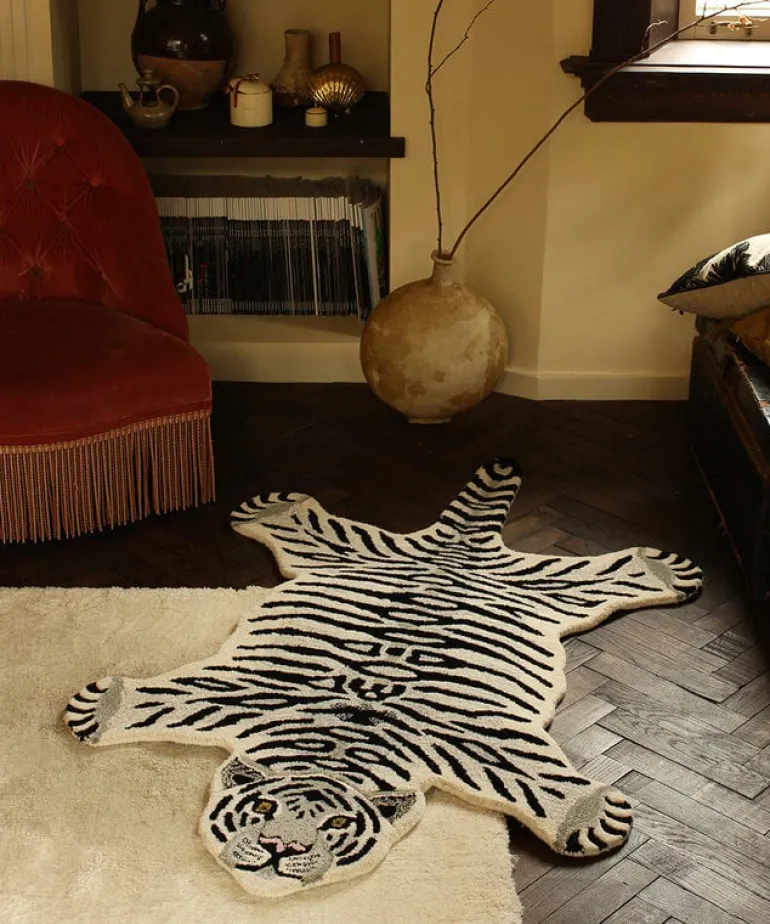 De Tapis Amis vloerkleden van Doing Goods zijn razend populair en wij begrijpen waarom! Het Doing Goods Snowy tiger vloerkleed L is prachtig en wordt met veel liefde handgemaakt in India van wol. Afmeting 150x90x2cm