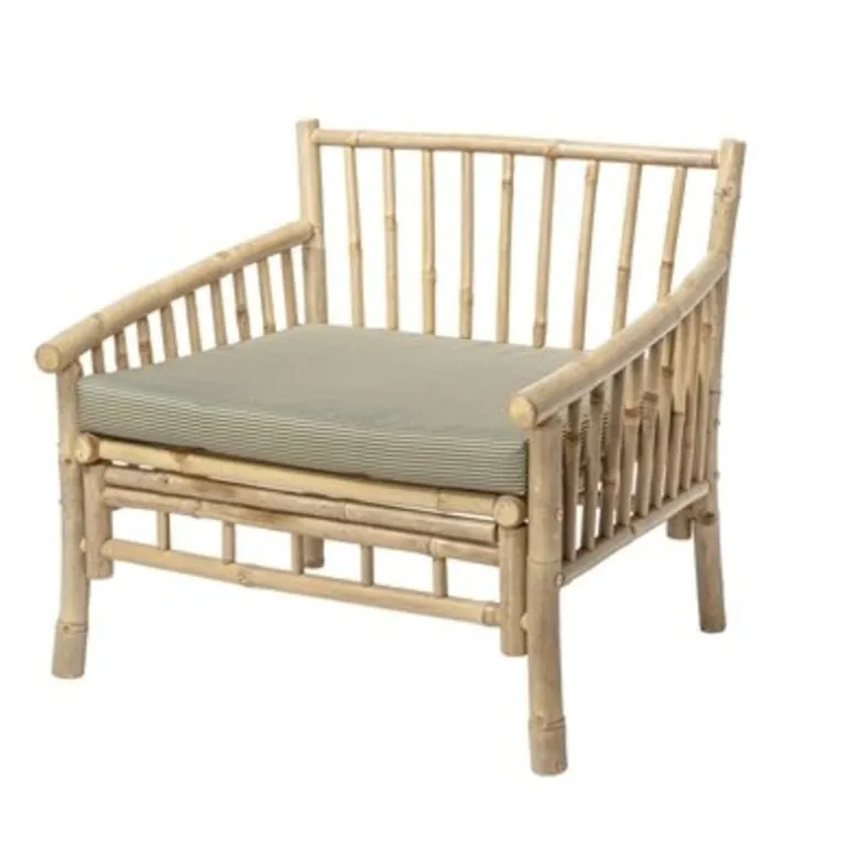Prachtige Bloomingville Sole outdoor loungestoel. Deze Bloomingville Sole loungestoel is speciaal ontworpen voor buiten gebruik! Het frame is gemaakt van bamboe, het kussen van polyester.