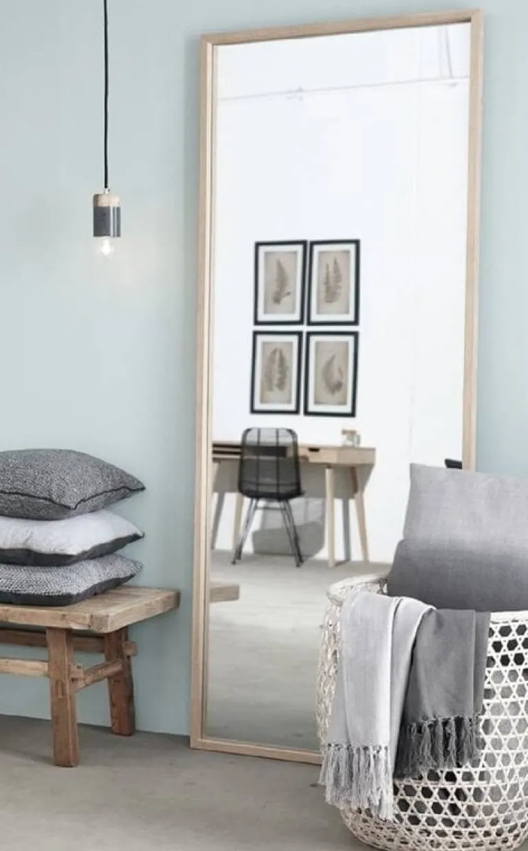 Moderne spiegel van het Deense interieurmerk Hübsch. Deze prachtige Hübsch spiegel is gemaakt van eikenhout en MDF. De spiegel is 184cm hoog en 74cm breed.