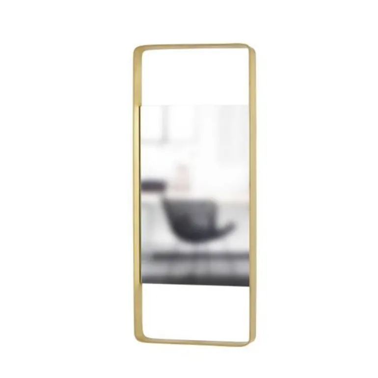 Mooie moderne spiegel de sfeermaker uit Denemarken; Hübsch. De Hübsch spiegel heeft een messing frame, tussen de spiegel en het frame boven en onder zit ruimte waardoor het lijkt alsof de spiegel zweeft.