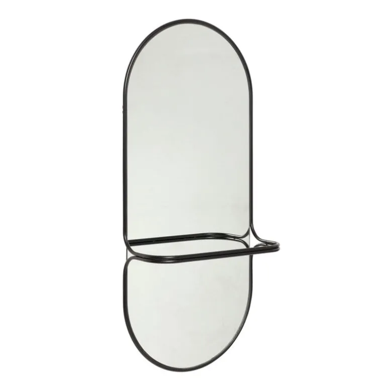 Prachtige spiegel van het Deense interieur merk Hubsch. De wandspiegel heeft een zwarte omlijsting en handige beugel om bijvoorbeeld een handdoek aan te hangen. Ideaal voor in de badkmer. Afmeting 46x21xh102cm