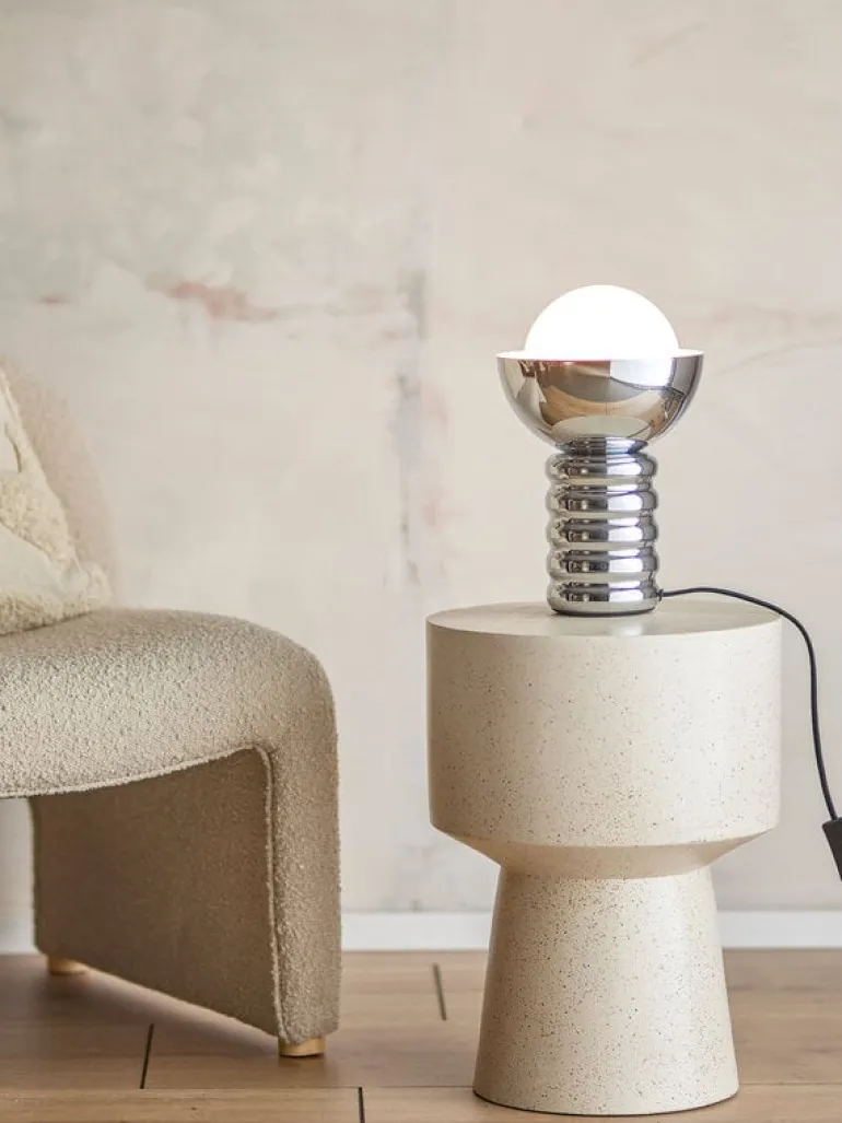 De Bloomingville Spike tafellamp is een decoratieve lamp met een bubbelend design in een glanzende chromen afwerking. De lamp is niet alleen een opvallende tafellamp, maar ook een decoratief object. Afmeting Ø20x32cm