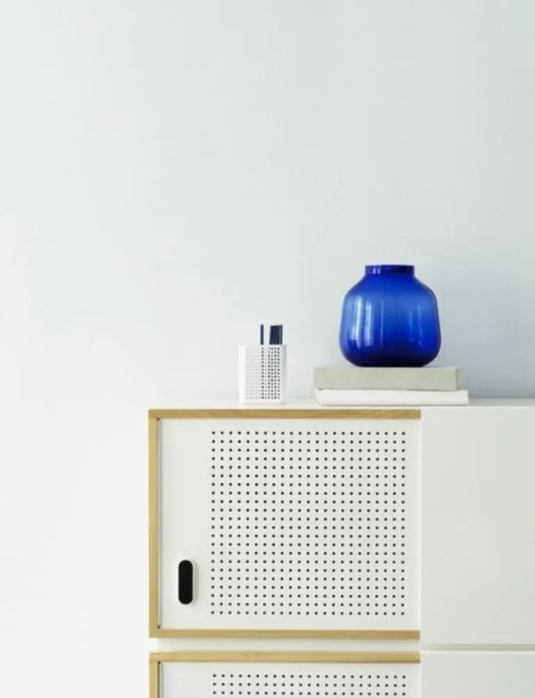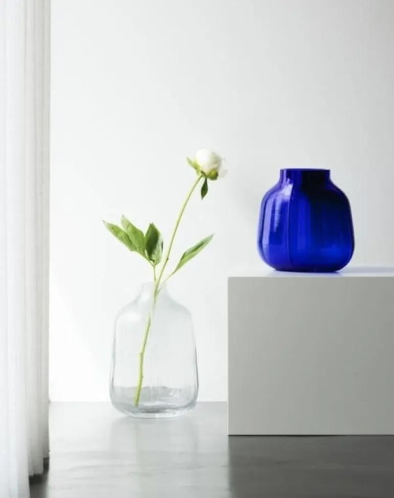 Mooie blauwe vaas van het merk Normann Copenhagen. De Normann Copenhagen Step vaas is gemaakt van glas en beschikbaar in verschillende kleuren en afmetingen. Afmeting: Ø11,5 cm, 23x23x17cm.