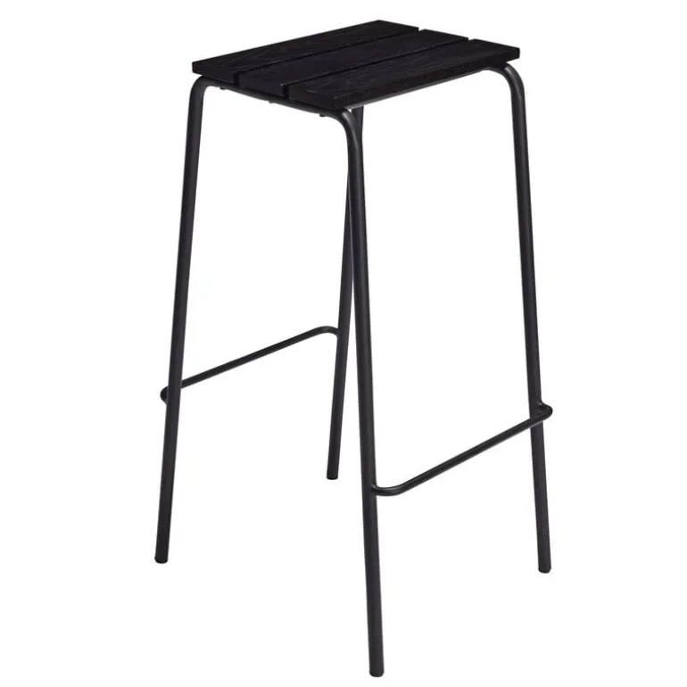 Mooie kruk voor aan een kookeiland of aan een bar. De Hubsch Stilt barstoel heeft een ijzeren onderstel en een houten zitting. Beschikbaar in twee kleuren. Afmeting 45x38x76cm