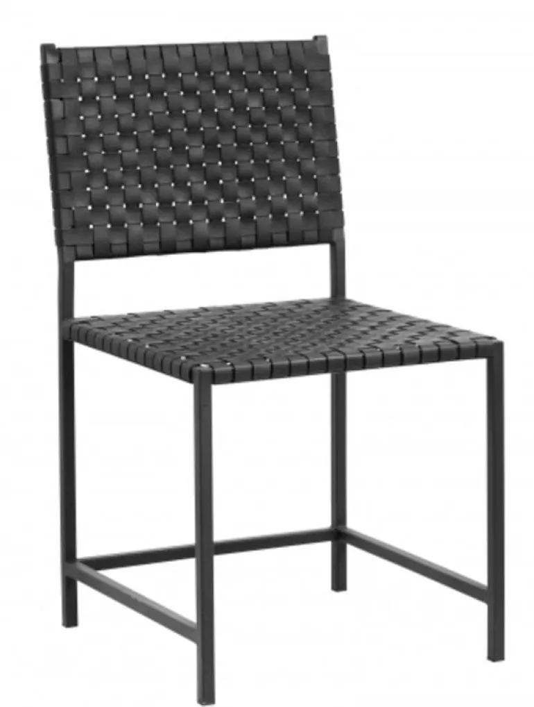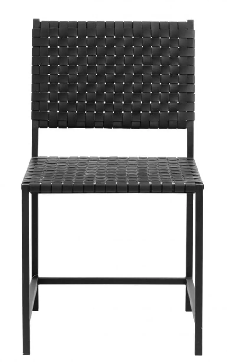 Mooie stoel van het prachtige interieurmerk Nordal. Deze Nordal eetkamerstoel is gemaakt van zwart leer met metaal. De stoel is 49 cm diep, 48.5 cm breed en 87 cm hoog.
