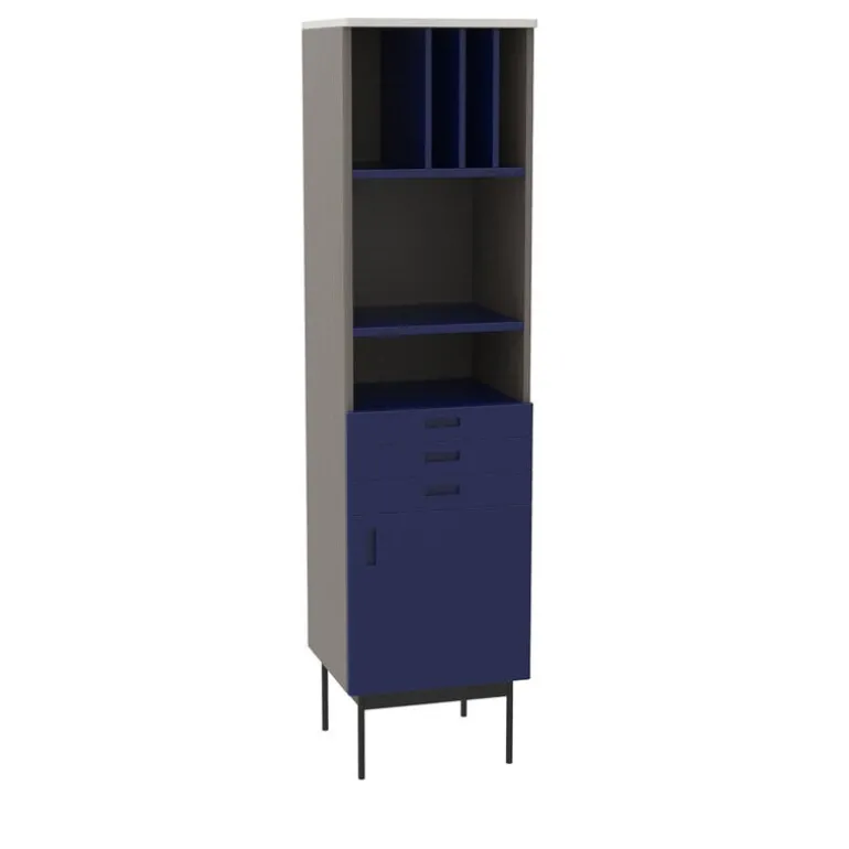 Wauw! Wat een eyecatcher deze blauwe kast van Husch. De Husch Study kast is gemaakt van hout en staal. Heeft en deurtje en lades, enorm veel opbergruimte en prachtig om te zien! Afmeting 90x42x109cm