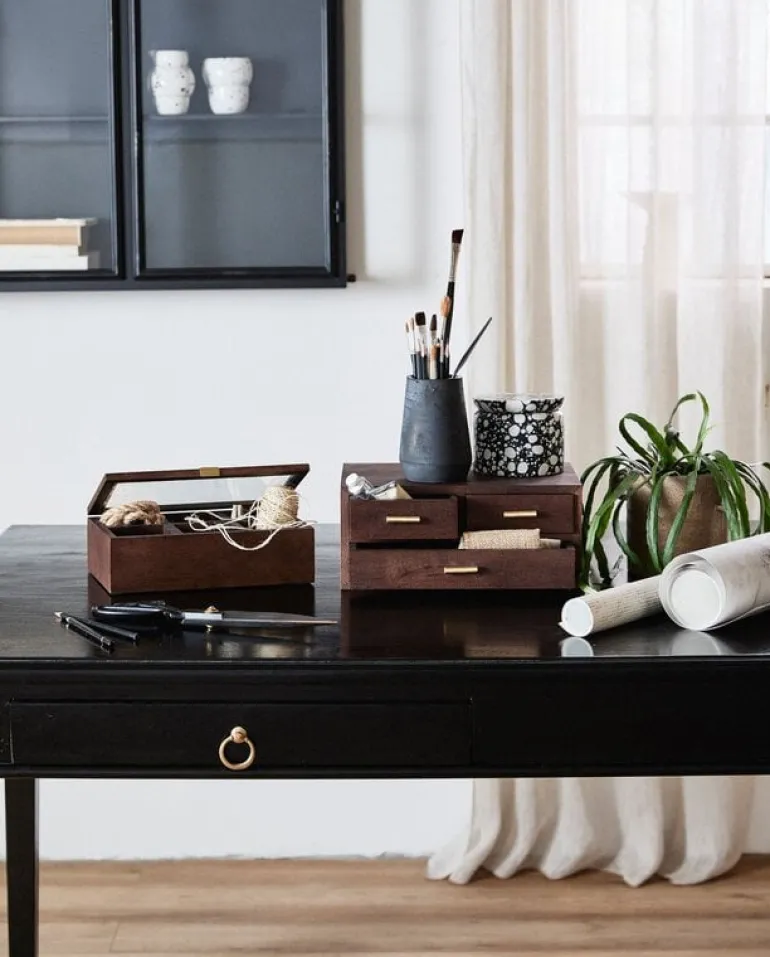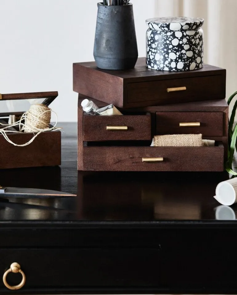 De Nordal Stuva opbergbox is gemaakt van hout met messing details. De box is zowel decoratief als praktisch voor opslag. Beschikbaar in twee maten. Afmeting 31x21x14cm