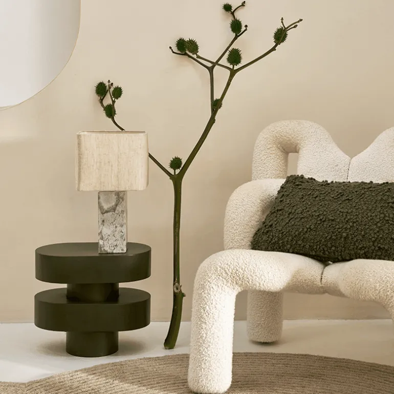 Er is altijd een link tussen Urban Nature Culture’s producten en moeder natuur. Zo ook bij de Urban Nature Culture Suvi tafellamp gemaakt van marmer. Een stijlvolle lamp met een linnen lampenkap. Afmeting 22x22x39cm
