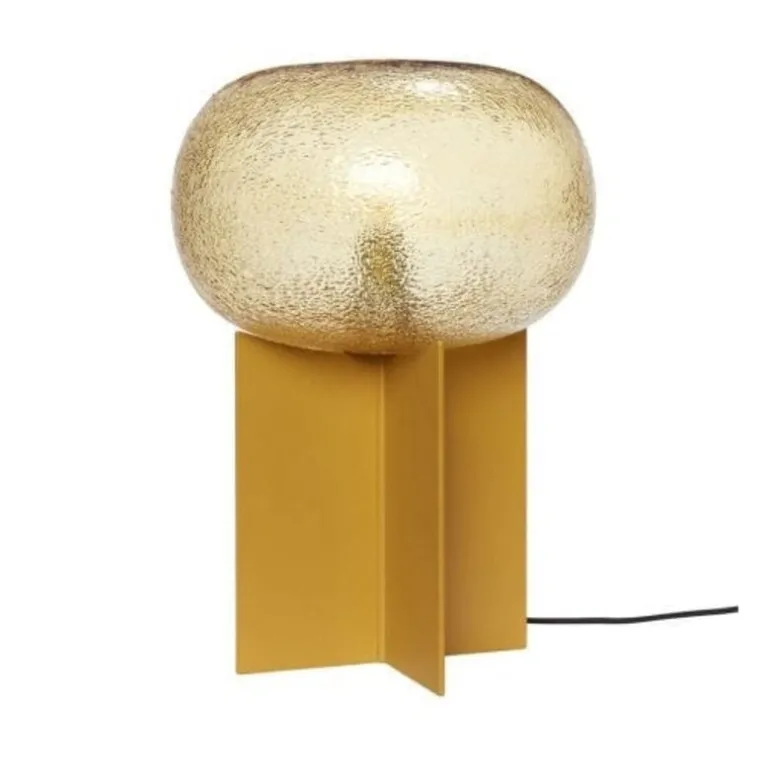Mooie glazen/metalen lamp van het interieurmerk Hubsch. De Hubsch tafellamp in de kleur amber is een echte eyecatcher. Afmeting ø25xh36cm