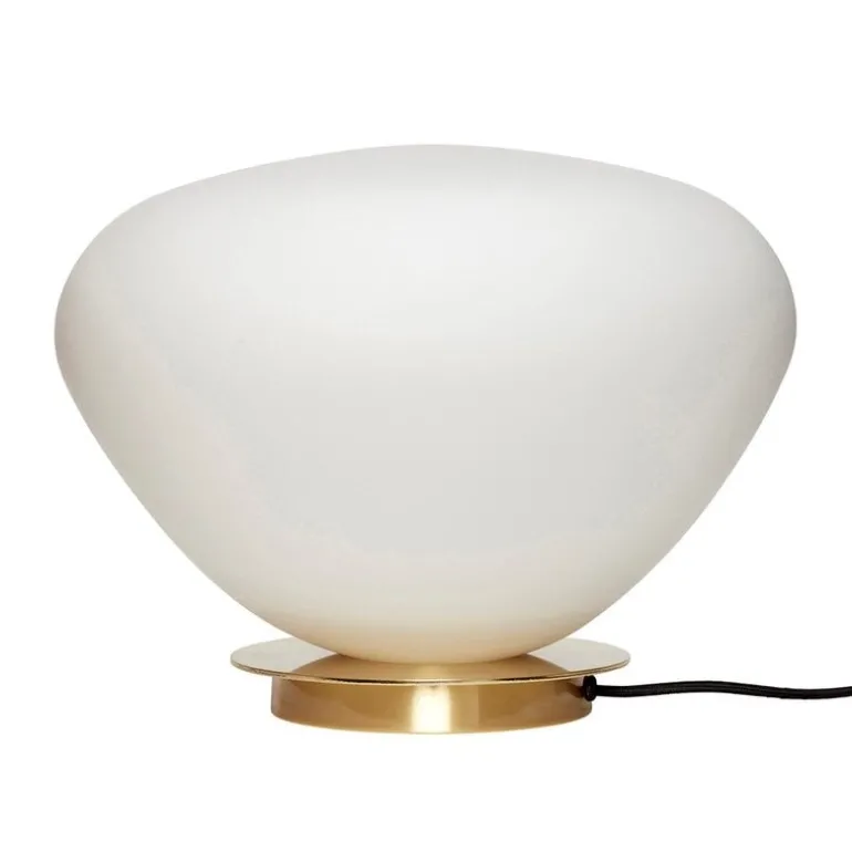 Moderne tafellamp van het Deense interieurmerk Hübsch. Deze prachtig glazen Hübsch tafellamp met messing voet is echt een EYECATCHER! Wordt geleverd zonder lichtbron. De lamp heeft een E27 fitting en is geschikt tot max 25W. Afmeting ø39xh28cm
