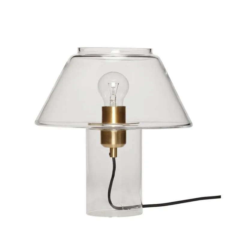 Moderne tafellamp van het Deense interieurmerk Hübsch. Deze prachtig glazen Hübsch tafellamp met messing details is een MUSTHAVE! Wordt geleverd zonder lichtbron. De lamp heeft een E27 fitting en is geschikt tot max 25W. Afmeting ø27xh29cm