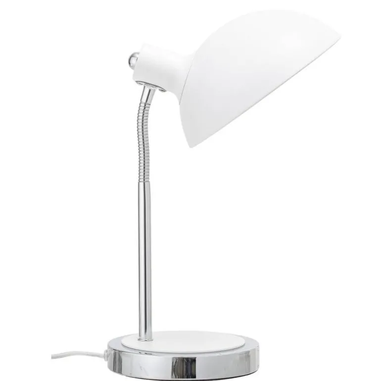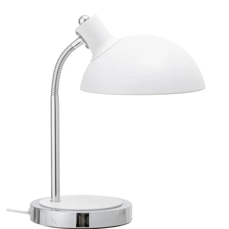 Mooie tafellamp van het prachtige interieurmerk Bloomingville. Deze Bloomingville tafellamp is gemaakt van metaal met een witte verstelbare lampenlap. De lamp heeft een hoogte van 22cm en wordt geleverd met een snoer met schakelaar.