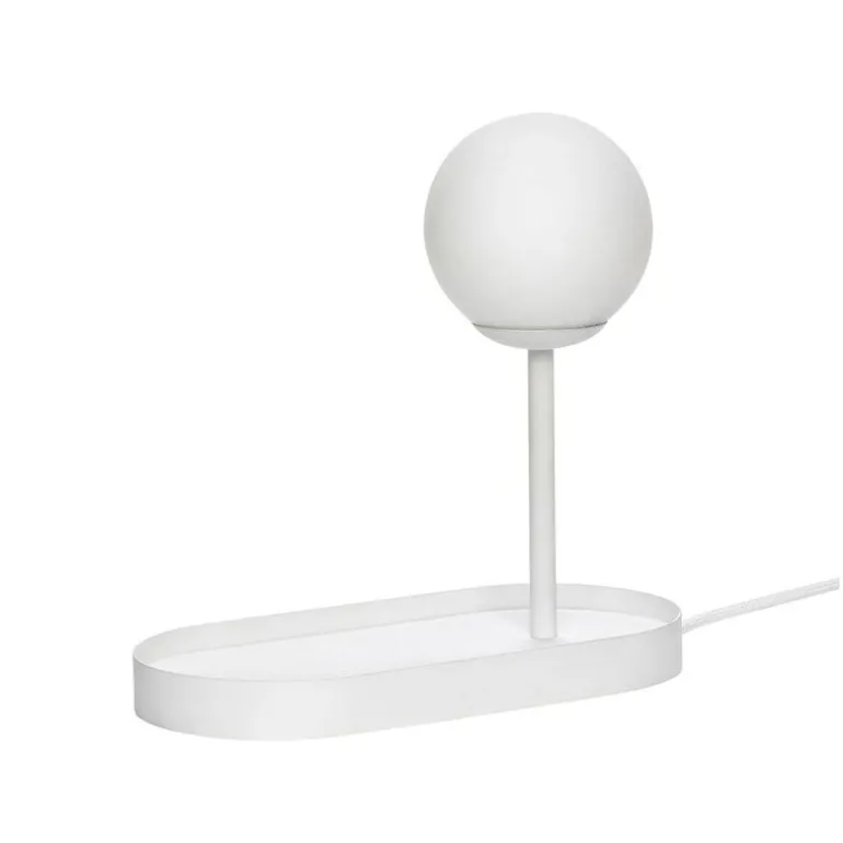 Moderne tafellamp van het Deense interieurmerk Hübsch. Deze prachtig witte Hübsch tafellamp is gemaakt van metaal. De lampenkap is gemaakt van wit glas. Leuk gecombineerd met de andere items uit de Hübsch collectie!