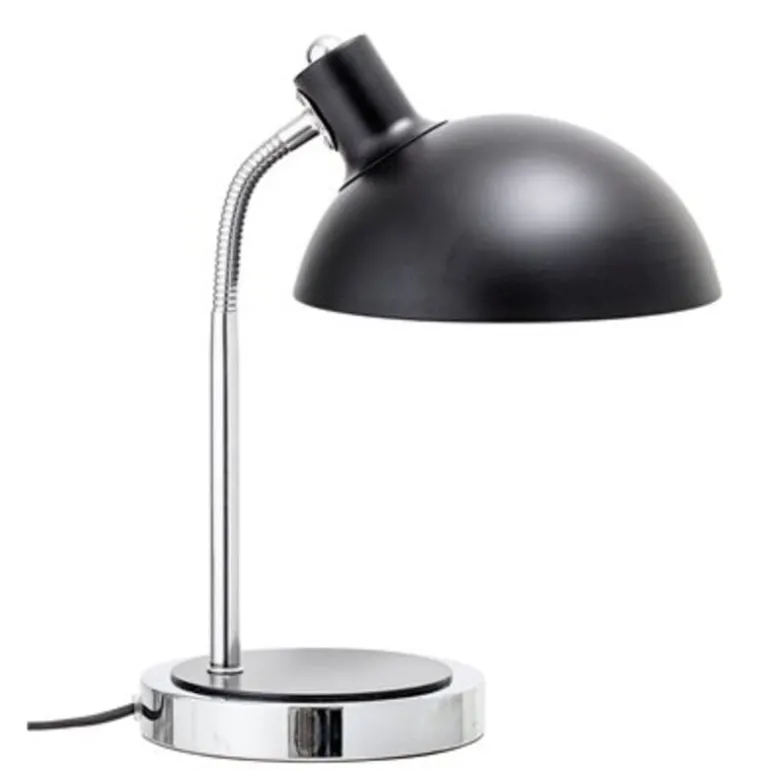 Mooie tafellamp van het prachtige interieurmerk Bloomingville. Deze Bloomingville tafellamp is gemaakt van metaal met een zwarte verstelbare lampenlap. De lamp heeft een hoogte van 22cm en wordt geleverd met een snoer met schakelaar.