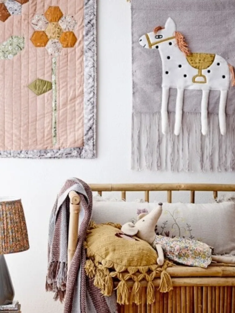 De nieuwe Bloomingville mini collectie is echt geweldig! Zoals de wanddecoratie voor in de kinderkamer. Het Bloomingville Tanne wandkleed met bloemen is gemaakt van katoen. Afmeting L100xH100 cm