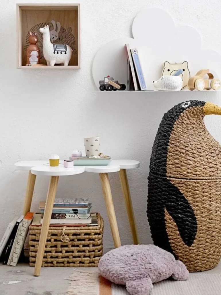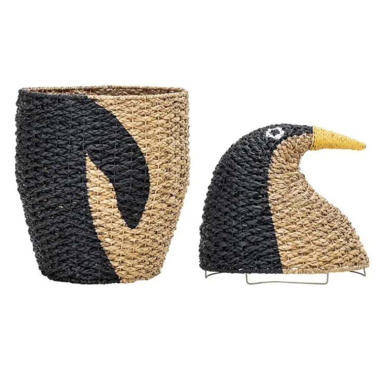 Mooie mand met deksel in de vorm van een pinguïn van het prachtige merk Bloomingville Mini. De Bloomingville Mini Tazia opbergmand heeft een doorsnede van 37cm en een hoogte van 69cm.