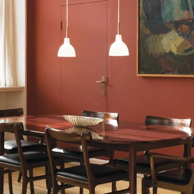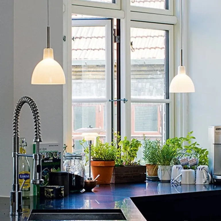 De Louis Poulsen Toldbod hanglamp heeft een zeer bescheiden vormgeving en hierdoor eenvoudig toe te passen in elk interieur. Gemaakt van mondgeblazen opaalglas en roestvrijstaal. beschikbaar in twee afmetingen. Afmeting 22×27,5x22cm