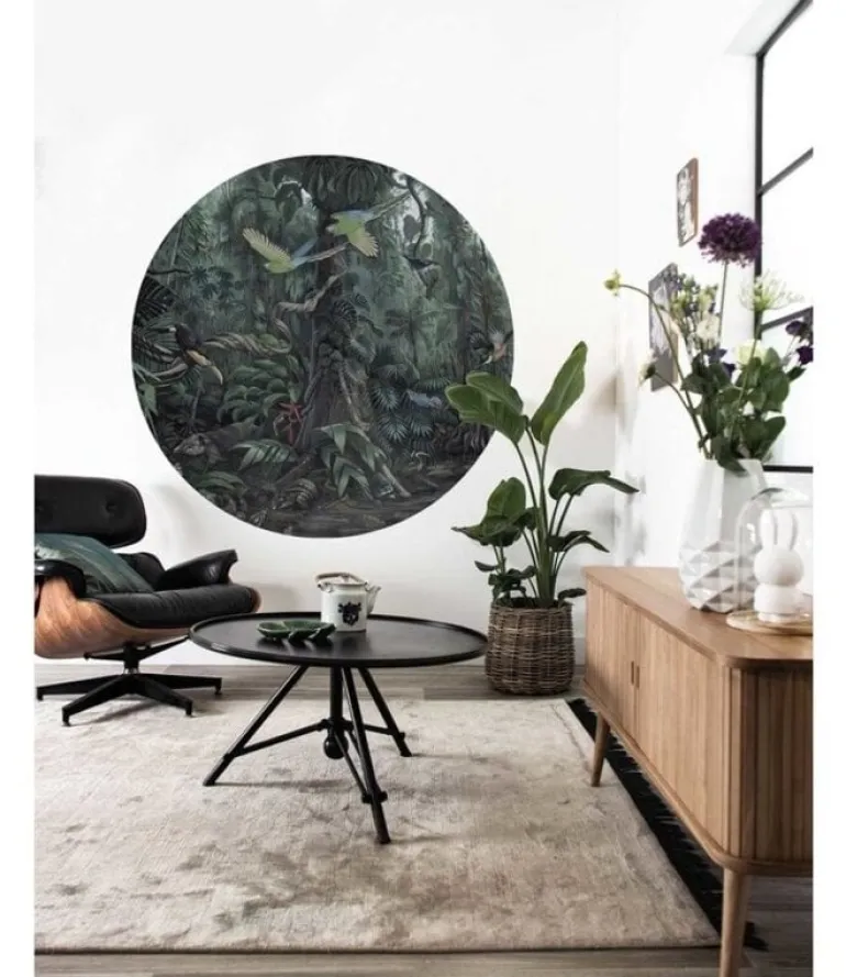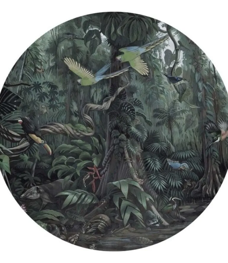 Prachtig hoogwaardig vliesbehang van KEK Amsterdam. De KEK Amsterdam Tropical landscapes cirkelbehang heeft geen coating waardoor het behang een super matte uitstraling heeft. Beschikbaar in verschillende afmetingen. Afmeting ø 142,5 cm (3 banen)